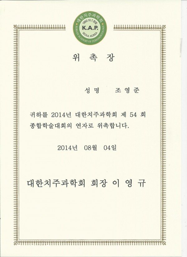★ 조영준원장님 2014년 대한치주과학회 종합학술대회 강연 ★