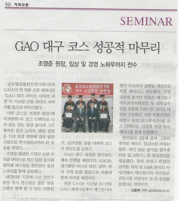 ★ 조영준원장님 GAO(글로벌임플란트연구회)세미나 ★