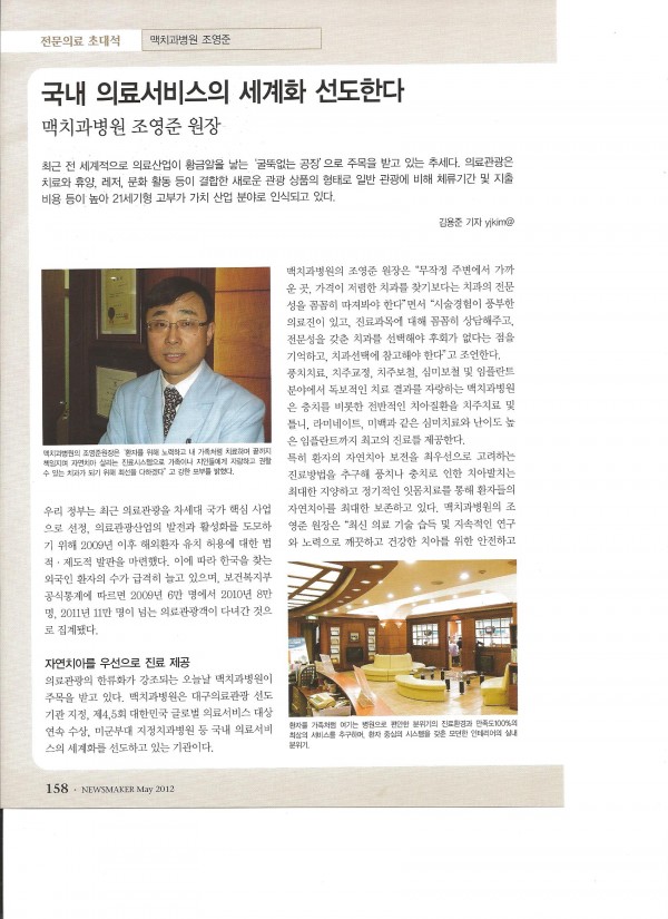 월간지-Newsmaker (국내의료서비스의 세계화 선도한다) 맥치과병원 기사
